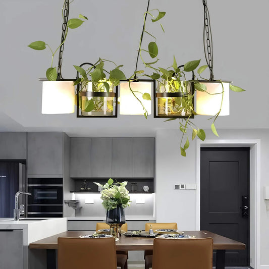 Nest Moderne Pflanzen Deckenleuchte - Grünes Metall & Glas