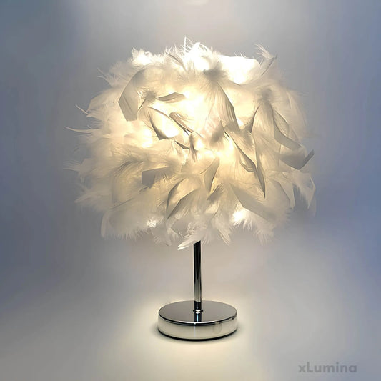 FederGlanz - Runde Tischlampe mit Federn