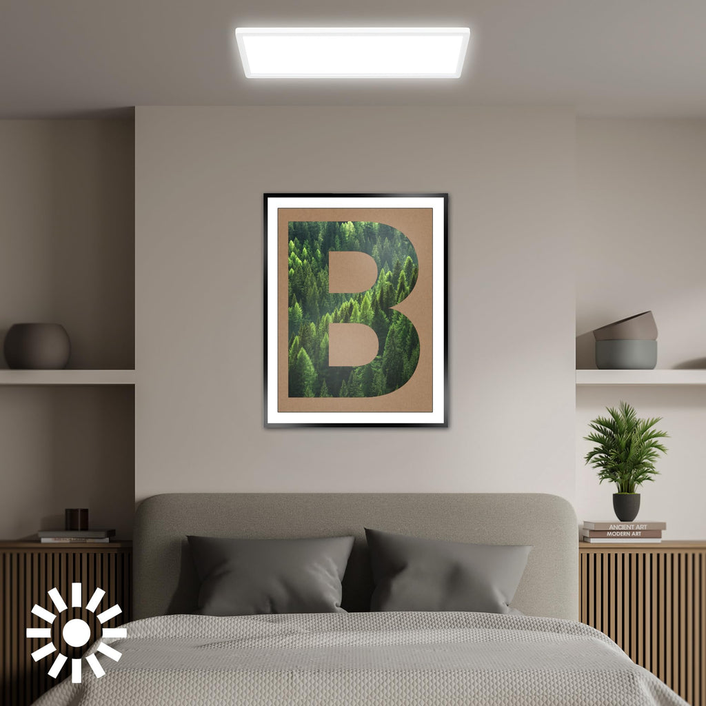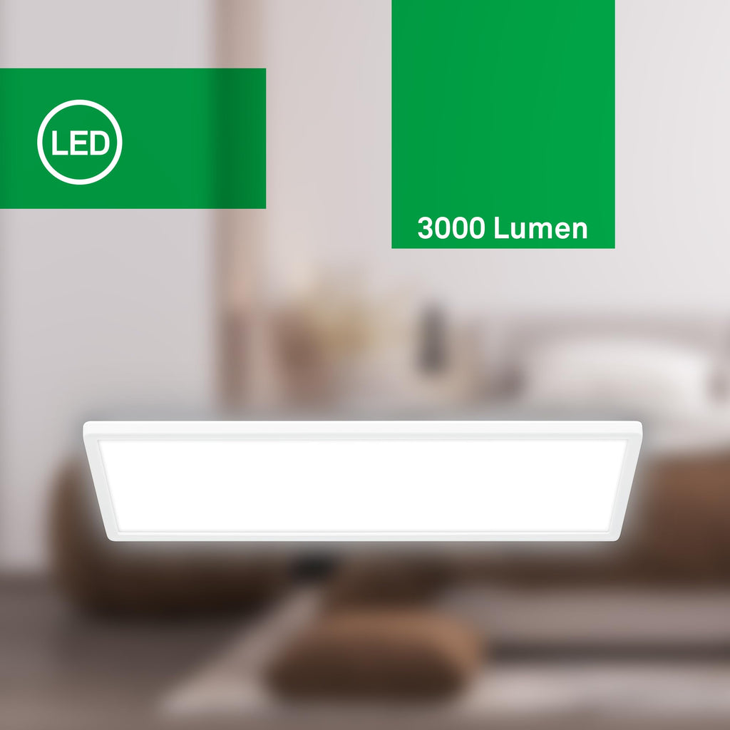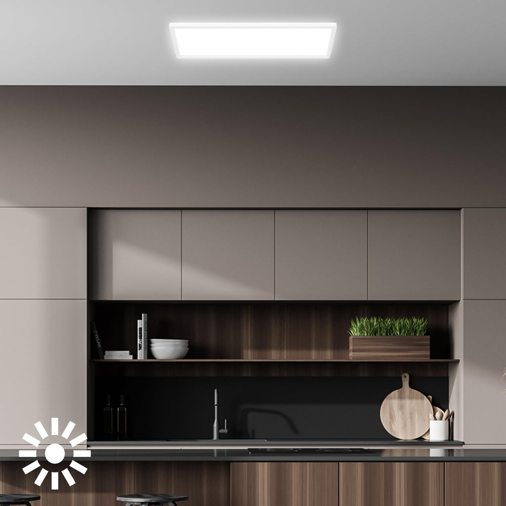 alt="BRILONER - LED Deckenleuchte Effizienzklasse A, ca. 50.000h Licht, 14W bei 3000lm, LED Panel flach, helle energiesparende Deckenlampe Wohnzimmer, Küchenlampe, Wohnzimmerlampe 58x20x3 cm, Weiß">
