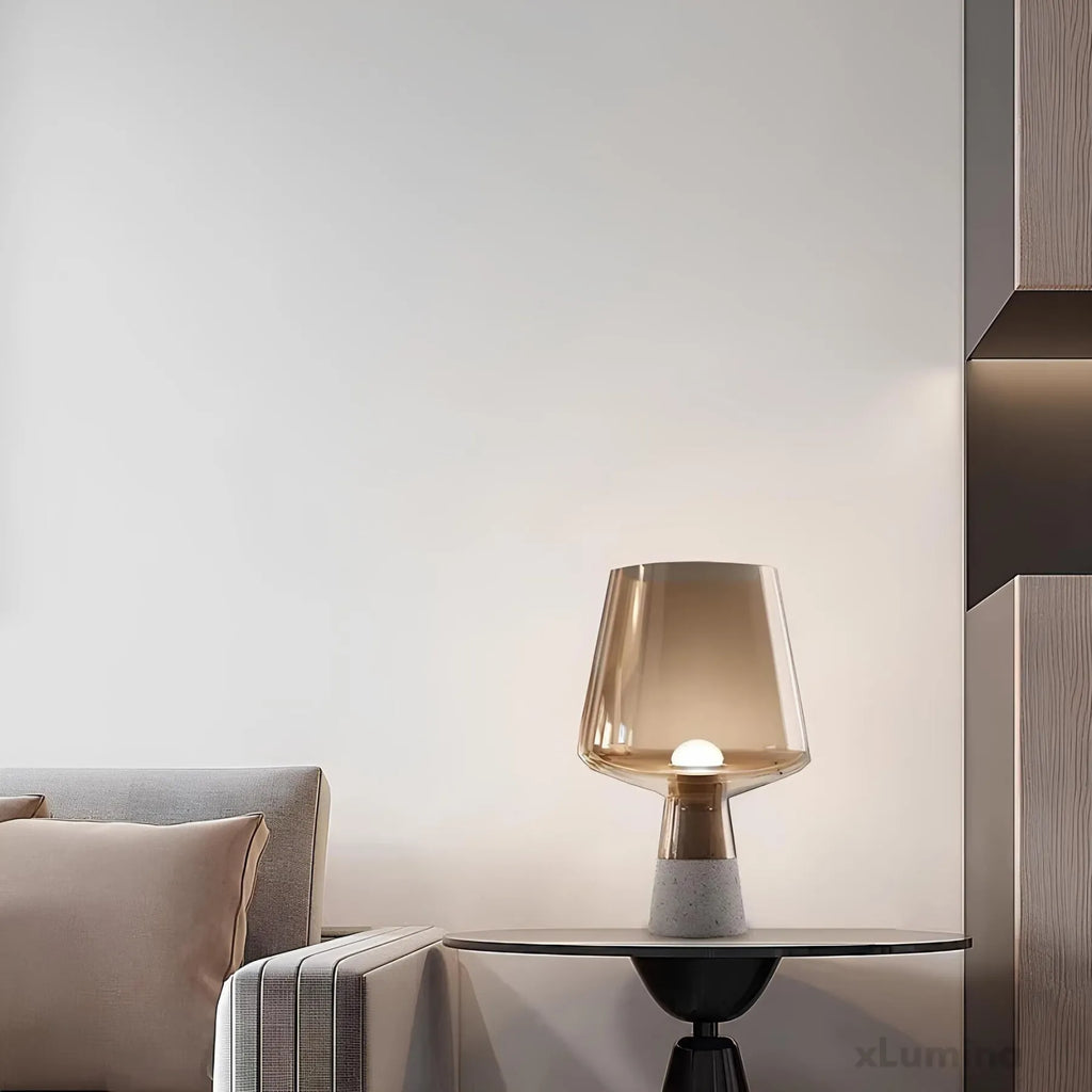 alt="leimu-amber-tischlampe-glas-betonbasis-modern-dekoration-xlumina">