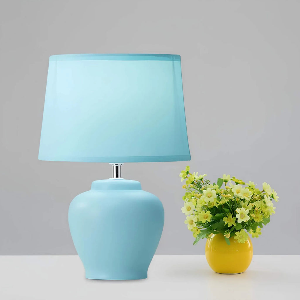 Die LisaLight Keramik-Tischlampe kombiniert modernes Design mit nordischer Schlichtheit und schafft eine beruhigende Atmosphäre in jedem Raum. Die charmante Vasenform aus Keramik und der weiche, konische Stoffschirm sorgen für ein harmonisches Zusammenspiel von Funktionalität und Ästhetik. Perfekt für das Schlafzimmer, Wohnzimmer oder Büro, diese Lampe setzt ein elegantes Statement.
