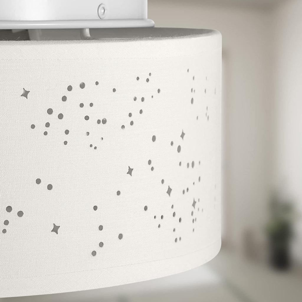 • MIT STERNENHIMMEL - Für einen besonderen Hingucker sorgt der im Stoffschirm ausgestanzte Sternenhimmel. Die verschiedenen Sterne und Kreise sorgen für ein gemütliches warmes Licht, perfekt für Schlafzimmer oder Kinderzimmer. Der Reflektor, über der E27 Fassung, sorgt zudem für mehr Helligkeit.