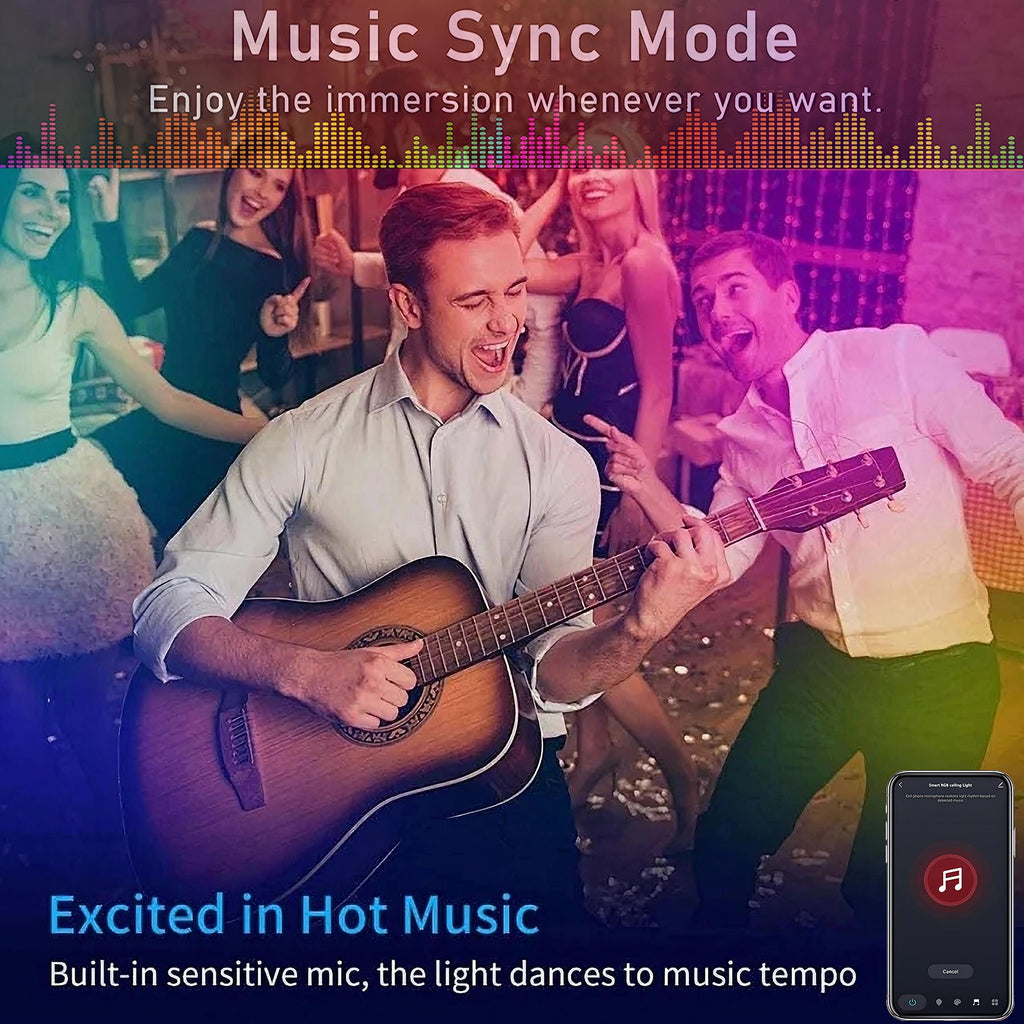 • Musik Rhythme: Stellen Sie das Licht durch die verschiedenen Szenarien ein, die von der intelligenten Plattform "smart life" zur Verfügung gestellt werden, die RGB Hintergrundbeleuchtung der Deckenleuchte kann verschiedene Farben je nach Musik oder Sound ändern und sich mit dem Rhythmus der Musik synchronisieren, was Ihnen leidenschaftliche und schöne Lichteffekte bei Versammlungen oder Partys bietet