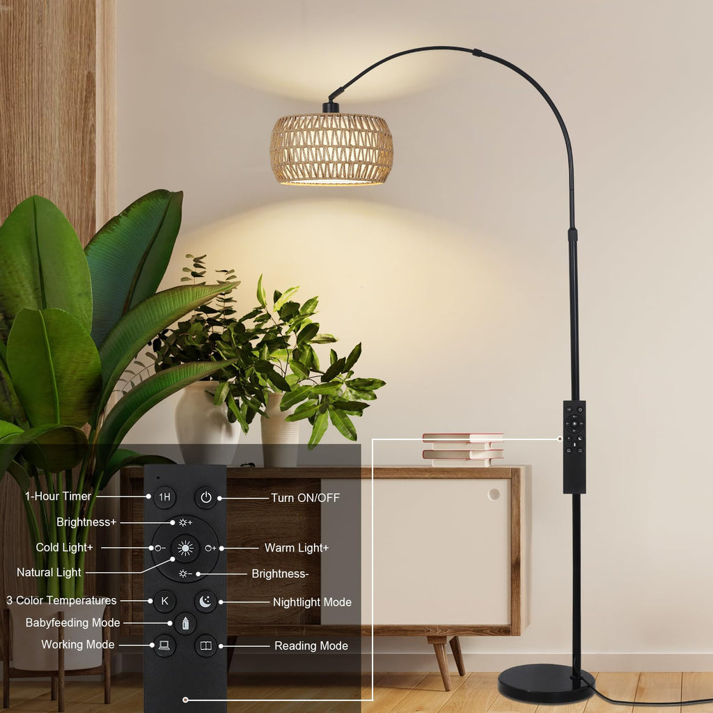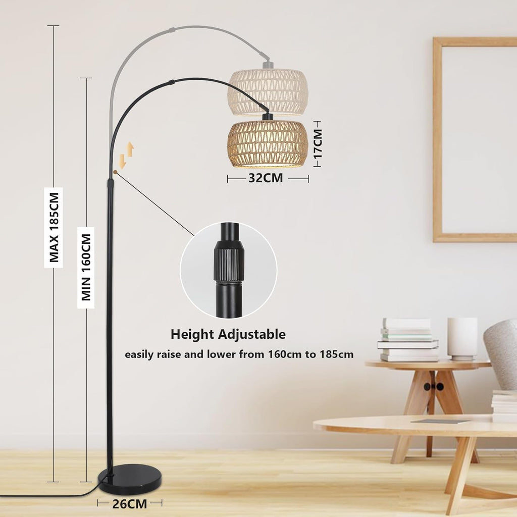 - 【Rattan & Leinen Doppel-Lampenschirme】Die Rattan-Stehlampe kommt mit abnehmbaren, handgeflochtenen Rattan- und Leinen-Doppel-Lampenschirmen, die frei nach Ihren Vorlieben angezeigt werden können. Diese Bogenlampe verbindet nahtlos den Vintage und Boho Stile mit zeitgenössischem Charme und fügt sich mühelos in jedes Dekor ein. Wenn das Licht an ist, werden Sie das weiche Licht und den charmanten Effekt dieser Wohnzimmerlampe Stehlampe zu schätzen wissen.