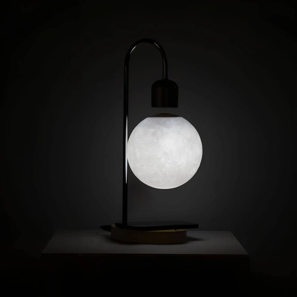 Bringen Sie den Zauber des Nachthimmels in Ihr Zuhause mit der Schwebende Mondlampe mit LED. Diese innovative Tischlampe bietet nicht nur eine detaillierte Mondoberfläche, sondern auch die praktische Funktion eines kabellosen Ladegeräts.