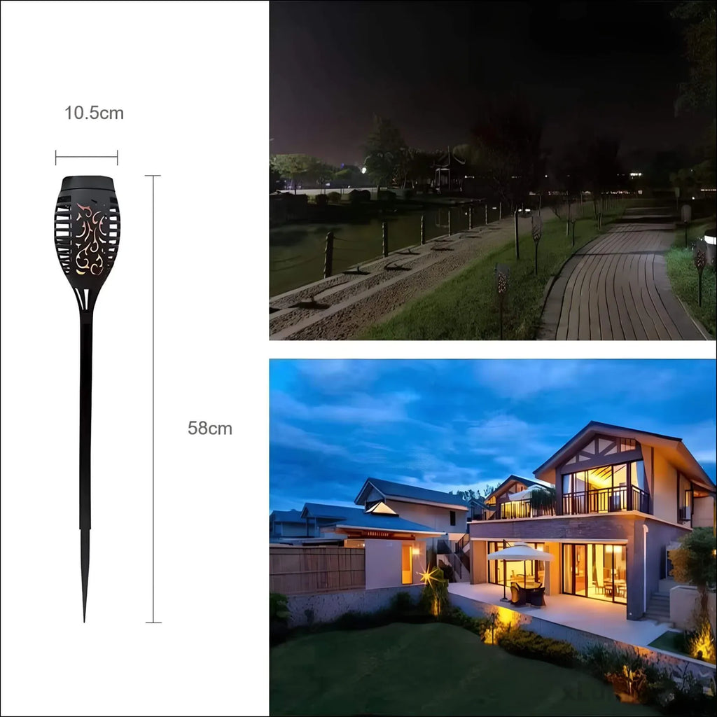 Erleben Sie die Magie des Flammeneffekts mit unserer Solar-Fackel. Diese energieeffiziente LED-Leuchte schafft eine warme, einladende Atmosphäre in Ihrem Außenbereich.