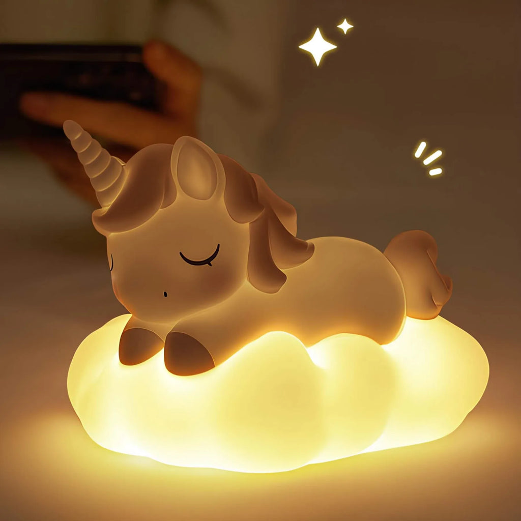 Dieses charmante LED-Nachtlicht in Form einer Wolke oder eines Einhorns ist das ideale Accessoire für jedes Kinderzimmer. Mit seinem weichen Silikonmaterial, sanften Farben und dimmbaren Licht schafft es eine beruhigende Atmosphäre, die perfekt für entspannte Abende oder erholsamen Schlaf ist. Das niedliche Design macht es außerdem zu einem tollen Geschenk für Kinder und Mädchen jeden Alters.