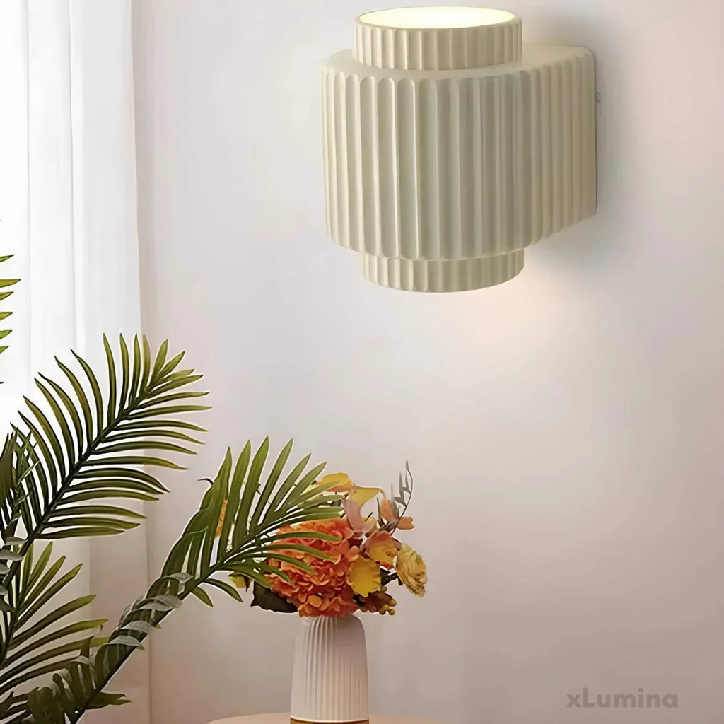 alt="vintage-zylindrische-resin-wandlampe-weiss-design-lampe-xlumina">