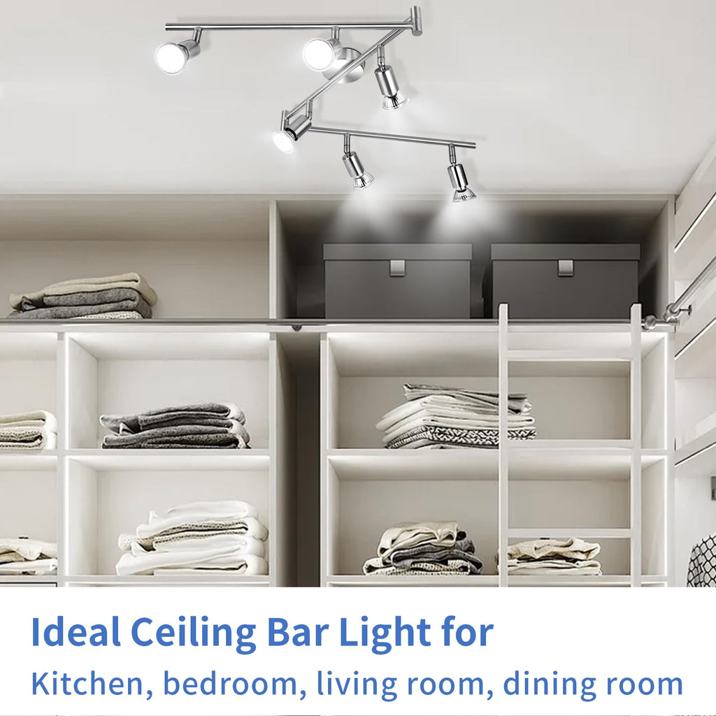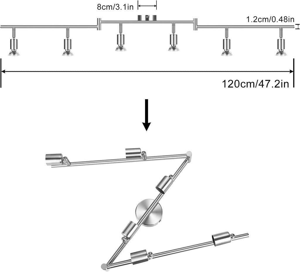 • 【Flexibel Einstellbar】Die Stangen an beiden Enden der Deckenlampe GU10 sind flexibel drehbar, und jede Strahler kann um 360° gedreht und um 90° nach oben und unten geneigt werden. Dadurch ist nicht nur eine großflächige Beleuchtung möglich, sondern auch eine präzise Fokussierung des Lichts.