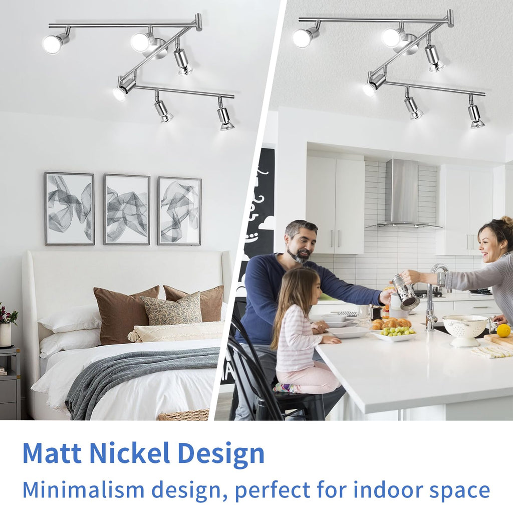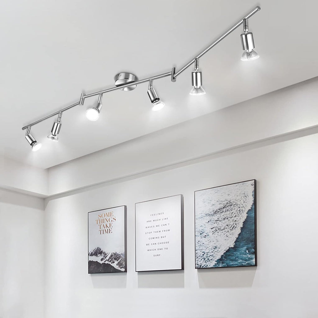 • 【Hervorragende Lichteffizienz】Die Deckenlampe Strahler sind mit 6 * 5W GU10 LED-Lampen ausgestattet, die eine kühle weiße Farbtemperatur von 6000K haben. Mit einer Helligkeit von 420 Lumen bieten sie eine äquivalente Leistung von 40W im Vergleich zu herkömmlichen Glühbirnen. Der Farbwiedergabeindex (CRI) beträgt 83RA und gewährleistet eine naturgetreue Farbwiedergabe.