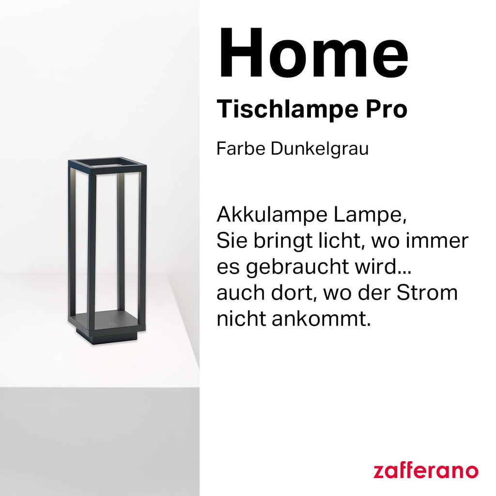 Zafferano, Home Pro Lampe, Wiederaufladbare und Kabellose Tischlampe mit Touch Control, Geeignet für den Innen- und Außenbereich, Dimmer, 3000 K, Höhe 29,4 cm, Farbe Dunkelgrau