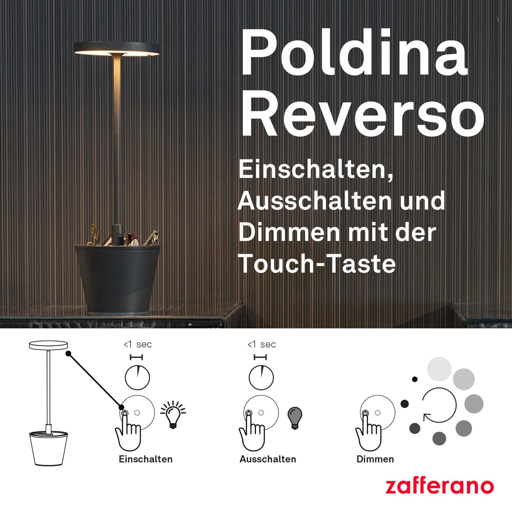 - AUCH FÜR DEN AUßENBEREICH: Dank der hohen Schutzart (IP54) kann die kabellose Poldina Reverso auch im Freien verwendet werden und sorgt für eine einzigartige Atmosphäre im Garten oder auf der Terrasse